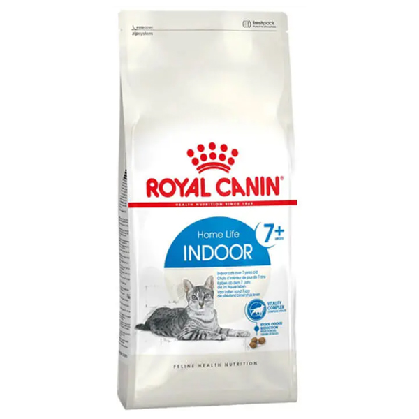 Royal Canin Indoor 7+ ayuda a mantener la vitalidad con la edad gracias a una combinación de antioxidantes. Reducción de los niveles de fósforo y sodio ayuda a mantener la función renal, mientras que la glucosamina, la condroitina y Omega 3 ayudan a garantizar la movilidad.